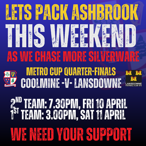 It’s set to be an exciting few days as both Coolmine men’s senior teams take on Lansdowne in their respective Metro Cup quarter-finals!
